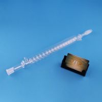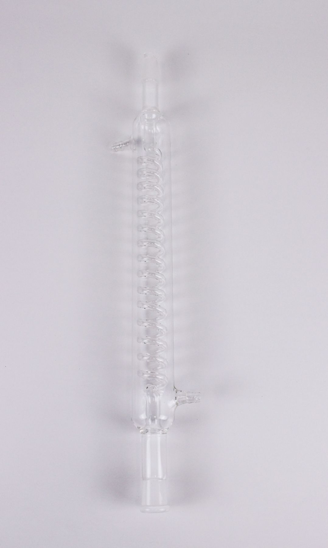 Спиральный холодильник 5drops, 300 мм, шлифы 19/26 – это стеклянный дистиллятор обладающий высокой производительностью, благодаря длине в 300 мм, он используется в лабораторных исследованиях и промышленности при конденсации паров с их охлаждением для последующего перехода в жидкую форму. Спиральный холодильник состоит из стеклянной внешней трубки с помещённой внутрь спиралью, его корпус оснащён двумя впаянными отводами. Он выполнен из особо прочного лабораторного стекла, поэтому имеет меньшие размеры и лучшие теплотехнические характеристики в отличие от металлических дистилляторов.