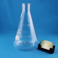 Колба коническая (Эрленмейера) 5drops КН-2-2000-50 без шлифа, горло 50 мм, Boro 3.3, 2000 мл. Колба коническая (Эрленмейера) 5drops КН-2-2000-50 без шлифа, горло 50 мм, Boro 3.3, 2000 мл - это самый популярный тип лабораторной посуды, применяемый в многих лабораторных задачах: фильтрование, перегонка, разгонка, выпаривание, синтез, хранение химических реагентов. Также такие колбы используют при аналитических процессах, в частности, при титриметрическом анализе. Выступая приемником при дистилляции, принимает участие в перекристаллизации веществ органической природы из легколетучих растворяющих субстанций. Микробиологи активно применяют конические колбы для формирования колоний бактерий. Широкое исполнение дна предотвращает опрокидывание колбы. Коническая форма способствует легкому и удобному перемешиванию содержимого в процессе работы вручную или при помощи специального лабораторного оборудования (шейкера, магнитной мешалки). Поэтому именно конические колбы выбирают, если органический синтез предвидит интенсивное перемешивание. Благодаря узкой горловине помещенный реактив не разливается, лучше защищен от испарений, нежели в лабораторном стакане. Края заливного отверстия, округленные, что позволяет просто и быстро закрывать колбу ватой или пробкой из резины или силикона.