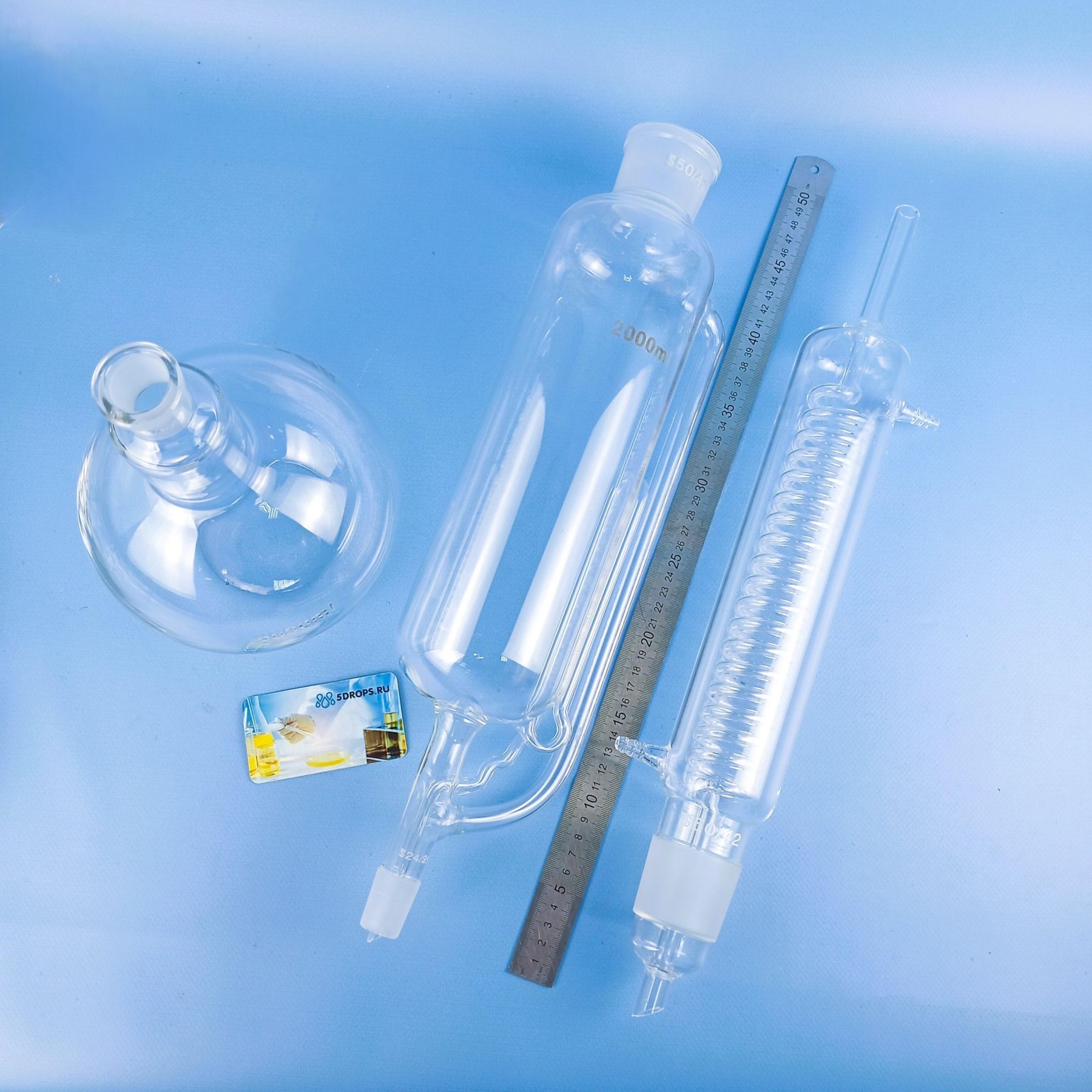 Простота сборки: Соединения из шлифованного стекла облегчают сборку и разборку аппарата.