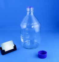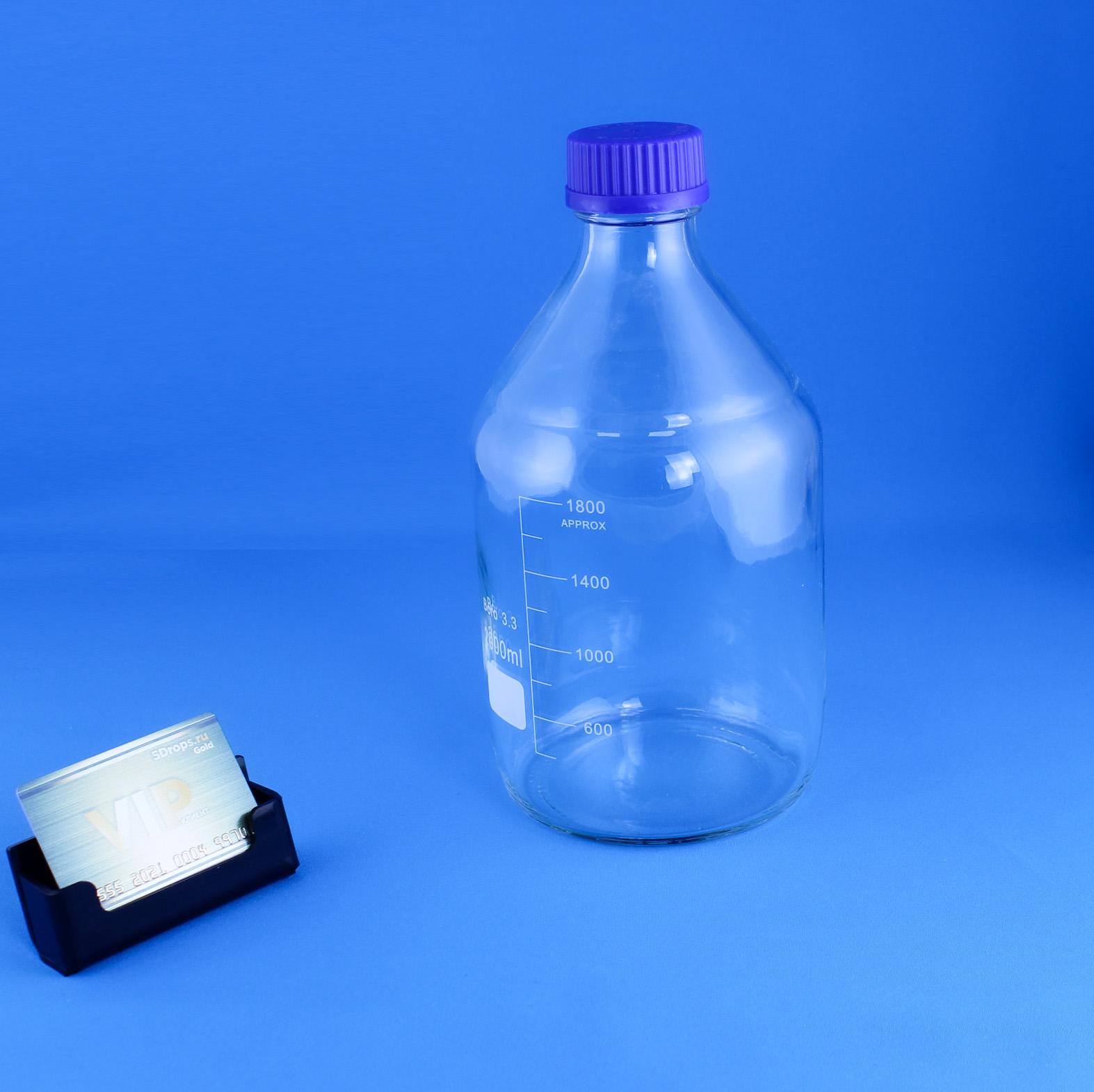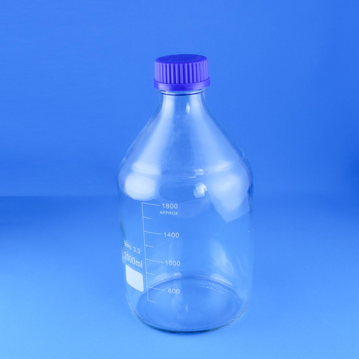 Стеклянная бутыль из качественного двойного лабораторного стекла с винтовой крышкой. Отличается термической и химической стойкостью. Винтовая крышка с прокладкой гарантирует полную защиту содержимого от попадания воздуха. На поверхность бутыли нанесена цифровая градуировка, позволяющая контролировать заливаемый объём жидкости. Наиболее распространённая стеклянная ёмкость для хранения различных реагентов, растворов и веществ в лабораториях.