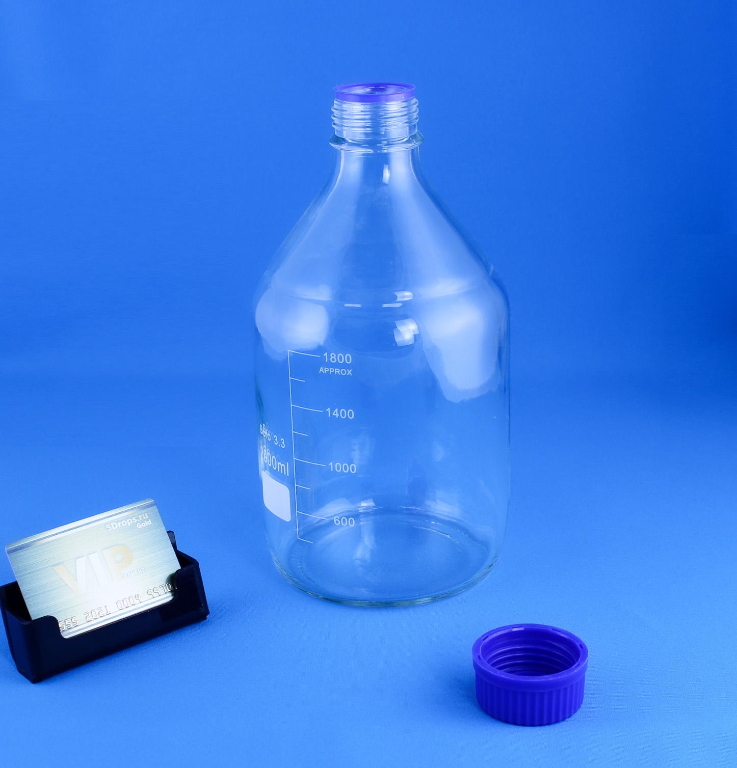 Банка для реактивов Labdevices GL45, 2000 мл, стекло Boro 3.3, светлое стекло, с винтовой крышкой, градуированная