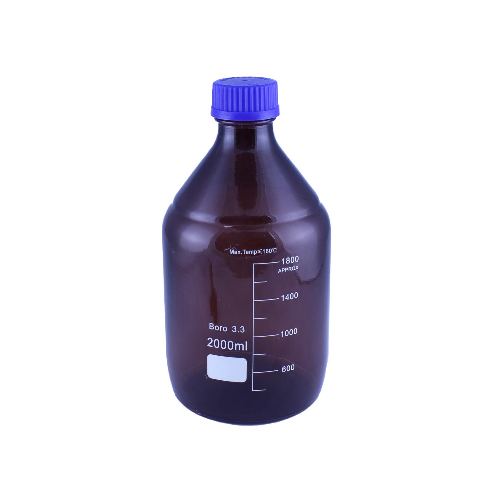Стеклянная бутыль из качественного двойного лабораторного стекла с винтовой крышкой. Отличается термической и химической стойкостью. Винтовая крышка с прокладкой гарантирует полную защиту содержимого от попадания воздуха. На поверхность бутыли нанесена цифровая градуировка, позволяющая контролировать заливаемый объём жидкости. Наиболее распространённая стеклянная ёмкость для хранения различных реагентов, растворов и веществ в лабораториях.
