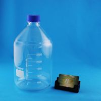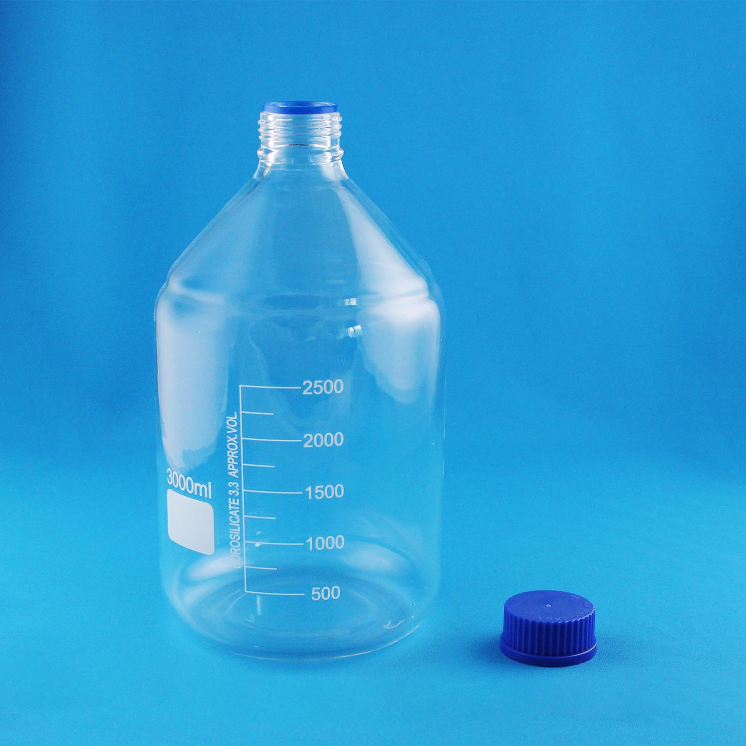 Стеклянная бутыль из качественного двойного лабораторного стекла с винтовой крышкой. Отличается термической и химической стойкостью. Винтовая крышка с прокладкой гарантирует полную защиту содержимого от попадания воздуха. На поверхность бутыли нанесена цифровая градуировка, позволяющая контролировать заливаемый объём жидкости. Наиболее распространённая стеклянная ёмкость для хранения различных реагентов, растворов и веществ в лабораториях.