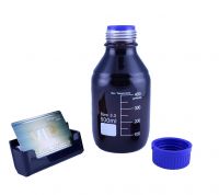 Стеклянная бутыль из качественного двойного лабораторного стекла с винтовой крышкой. Отличается термической и химической стойкостью. Винтовая крышка с прокладкой гарантирует полную защиту содержимого от попадания воздуха. На поверхность бутыли нанесена цифровая градуировка, позволяющая контролировать заливаемый объём жидкости. Наиболее распространённая стеклянная ёмкость для хранения различных реагентов, растворов и веществ в лабораториях.