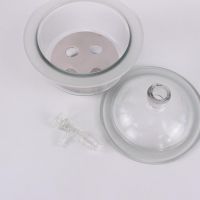 Дополнительные возможности: Внутри эксикатора находится сменный лоток, предназначенный для хлористого кальция или других влагопоглотителей. В комплект поставки также входит перфорированный диск с большими центральными отверстиями. Эксикатор можно использовать при температуре окружающей среды. Для размещения внутри горячих тиглей рекомендуется использовать фарфоровые вставки.