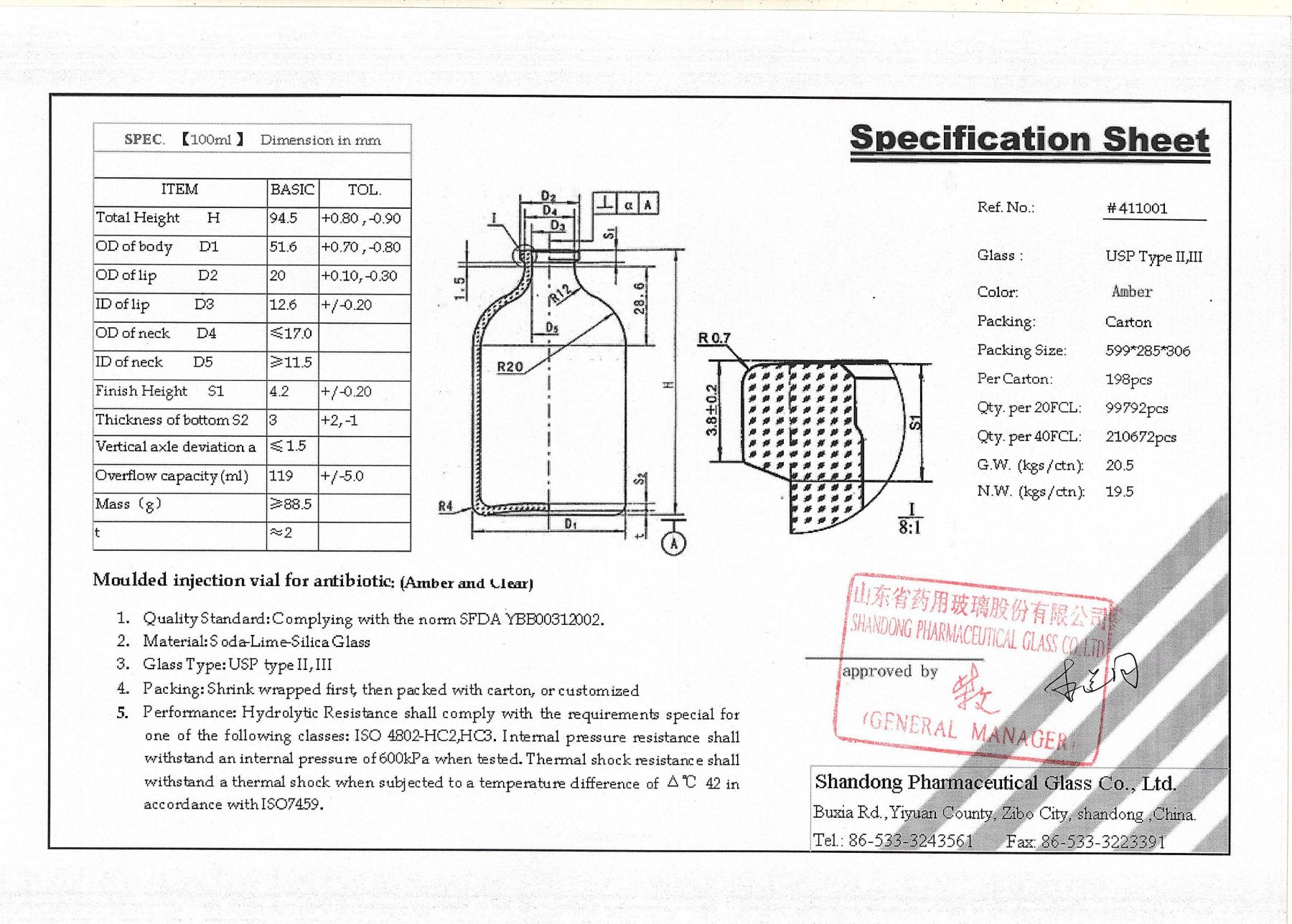 Сертификация качества: Одобрено ISO/CFDA и классифицировано USP Type III, что подтверждает соответствие флакона международным стандартам фармацевтической упаковки.