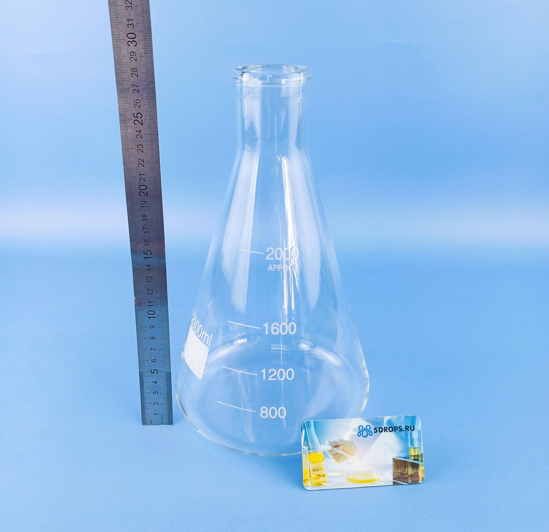 Колба коническая (Эрленмейера) Labdevices КН-2-2000-50, 2000 мл, горло 50 мм, стекло Boro 3.3, без шлифа