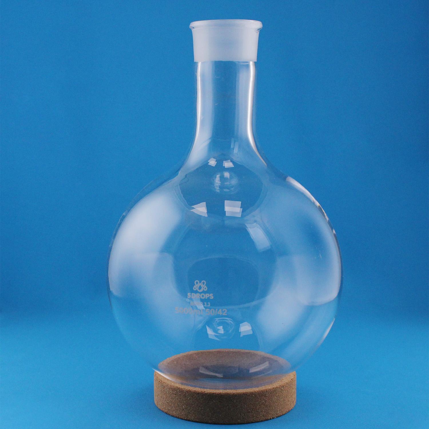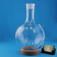 Колба круглодонная Labdevices К-1-5000-50/42 со шлифом, 5000 мл. Колба круглодонная Labdevices К-1-5000-50/42 со шлифом, 5000 мл - универсальная лабораторная ёмкость, пригодная для проведения разнообразных химических процессов, а также для использования в качестве небольшой перегонной колбы при проведении процесса перегонки или дистилляции. Шарообразное дно не допускает вертикальную установку ёмкости на плоскости, но не препятствует расположению на наклонной поверхности, также для устойчивого крепления можно использовать штатив. Термостойкое химически инертное стекло, из которого изготовлена колба, допускает проводить нагрев как на электрической, так и на газовой, и даже на индукционной плите. Среди ощутимых плюсов при использовании круглодонной колбы в качестве перегонной ёмкости также следует выделить абсолютную наглядность происходящих в ней процессов, что выгодно отличает её от тех же металлических перегонных кубов