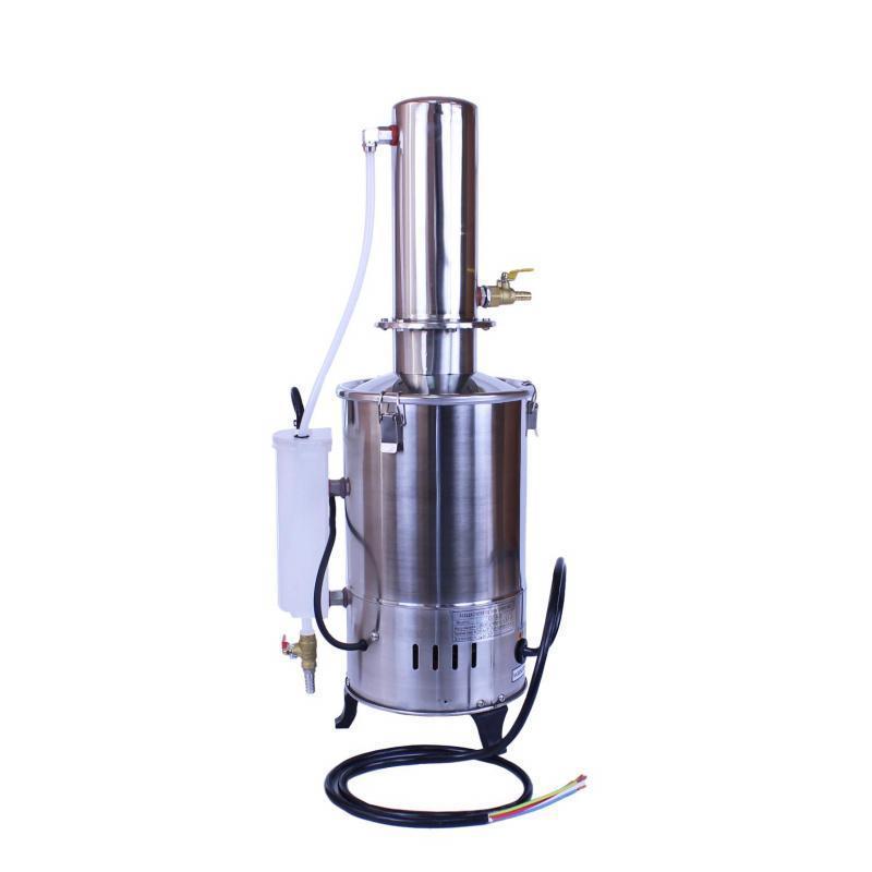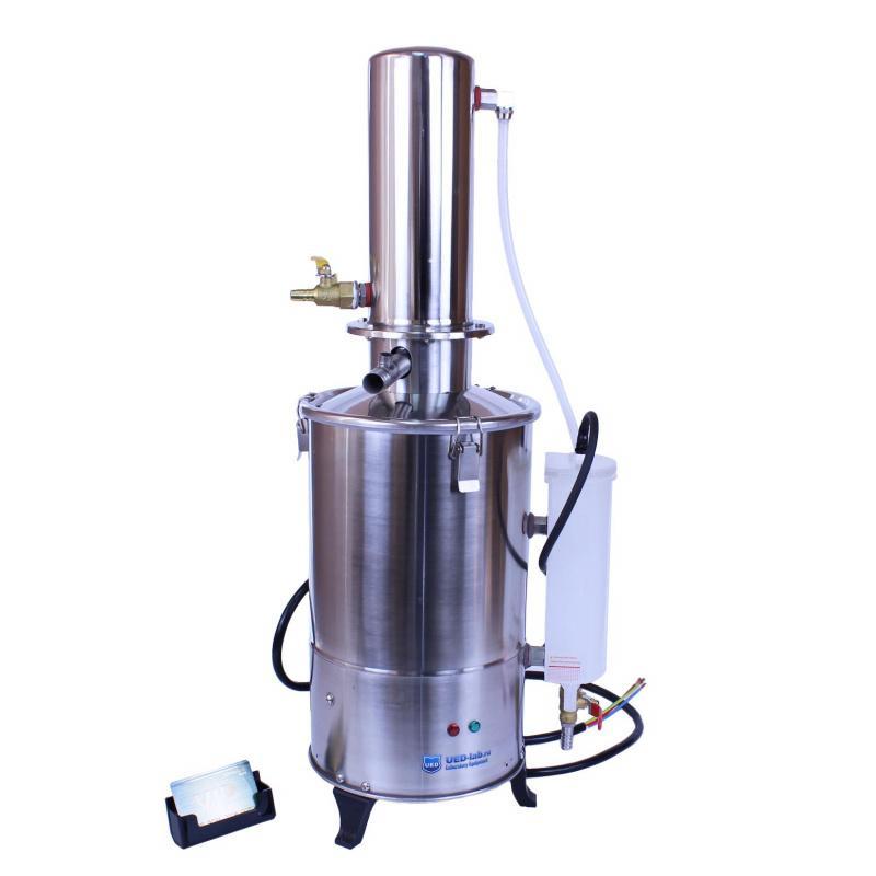 Модель Labdevices-5LIII обладает рабочей производительностью 5 л/час, мощностью 4,5 кВт и при этом весит всего около 5 кг! Данный аквадистиллятор оснащен световой и звуковой сигнализацией недостатка воды в выпарительном резервуаре, что дополнительно обеспечивает безопасность всего процесса получения дистиллированной воды.