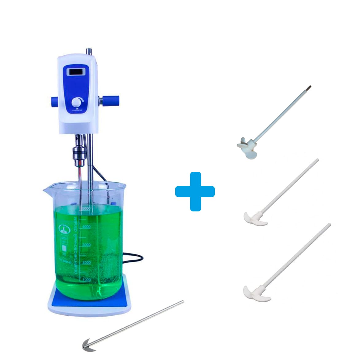 Комплект: Верхнеприводная мешалка Labdevices-20, 200 Ватт, до 20 литров, цифровой дисплей + мешальники 4 шт.