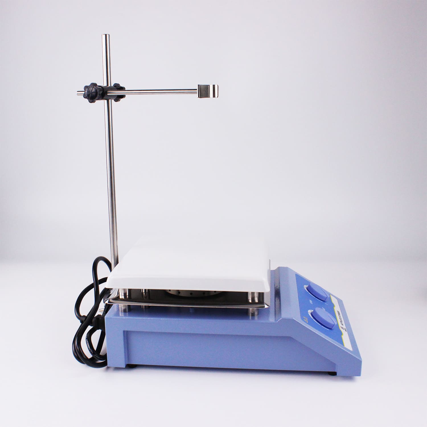 Плита из керамического алюминия устойчива к химическим реактивам и обеспечивает равномерное распределение тепла, что делает мешалку подходящей для различных объемов и типов контейнеров.
