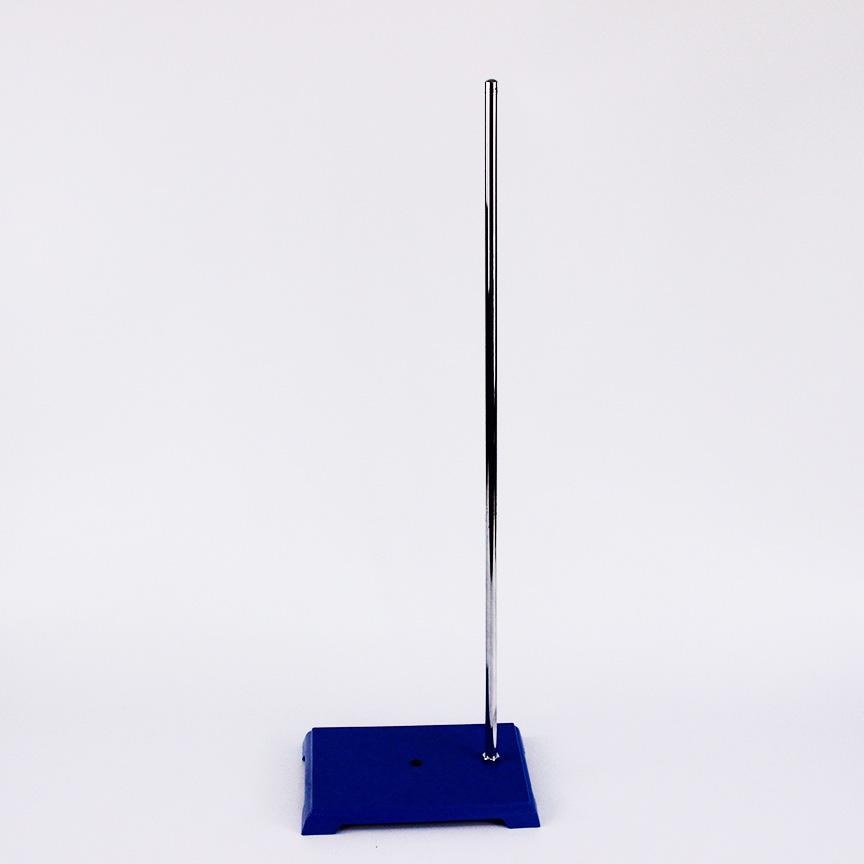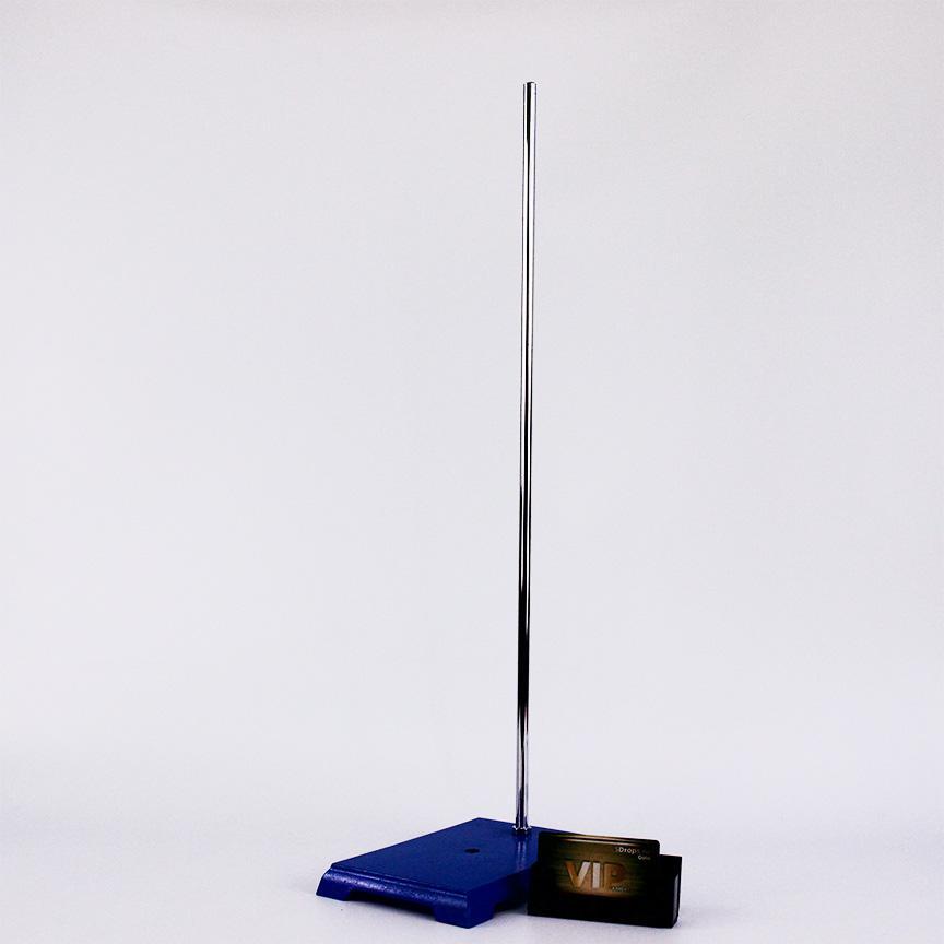 Металлическая опорная платформа размером 200×140 мм с вертикальным стальным стержнем диаметром 10 мм и длиной 600 мм. Предназначено для создания устойчивой рабочей станции при проведении лабораторных исследований.