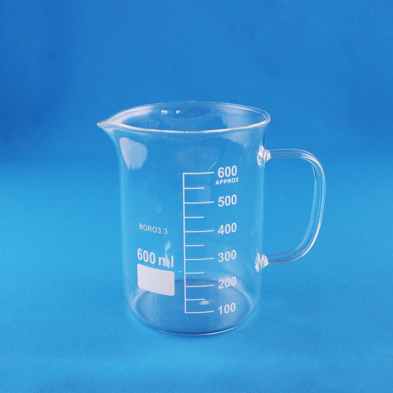 Стакан лабораторный со стеклянной ручкой Labdevices В-1-600, 600 мл, стекло Boro 3.3, градуированный