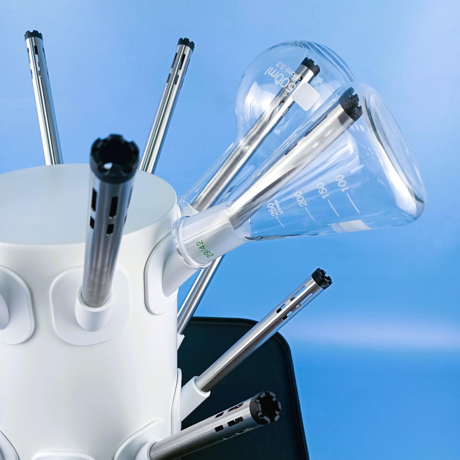 Контроль процесса: вручную регулируемые время и мощность, три понятных режима на поворотных ручках. Легко подстроить под тонкое стекло или толстостенные колбы.
