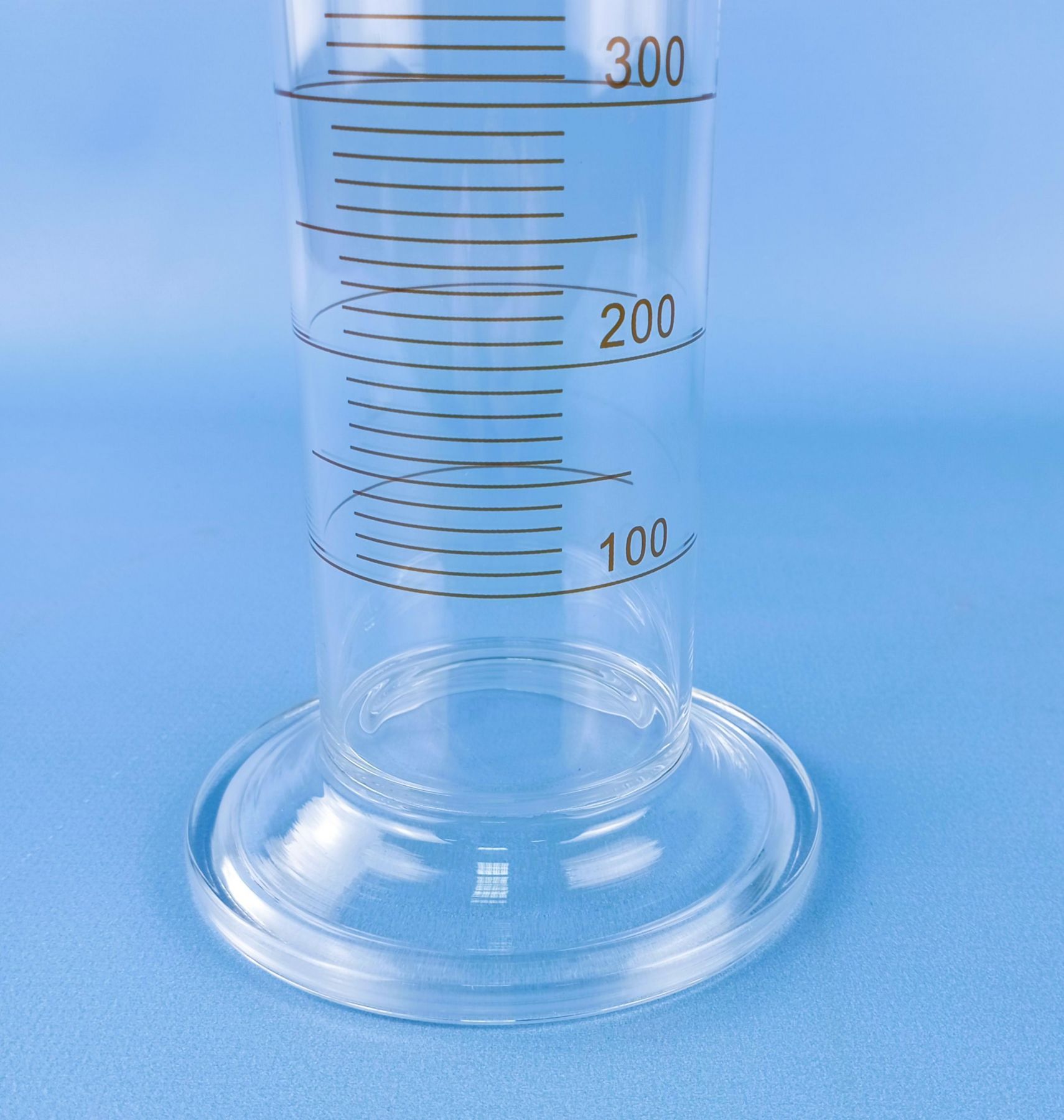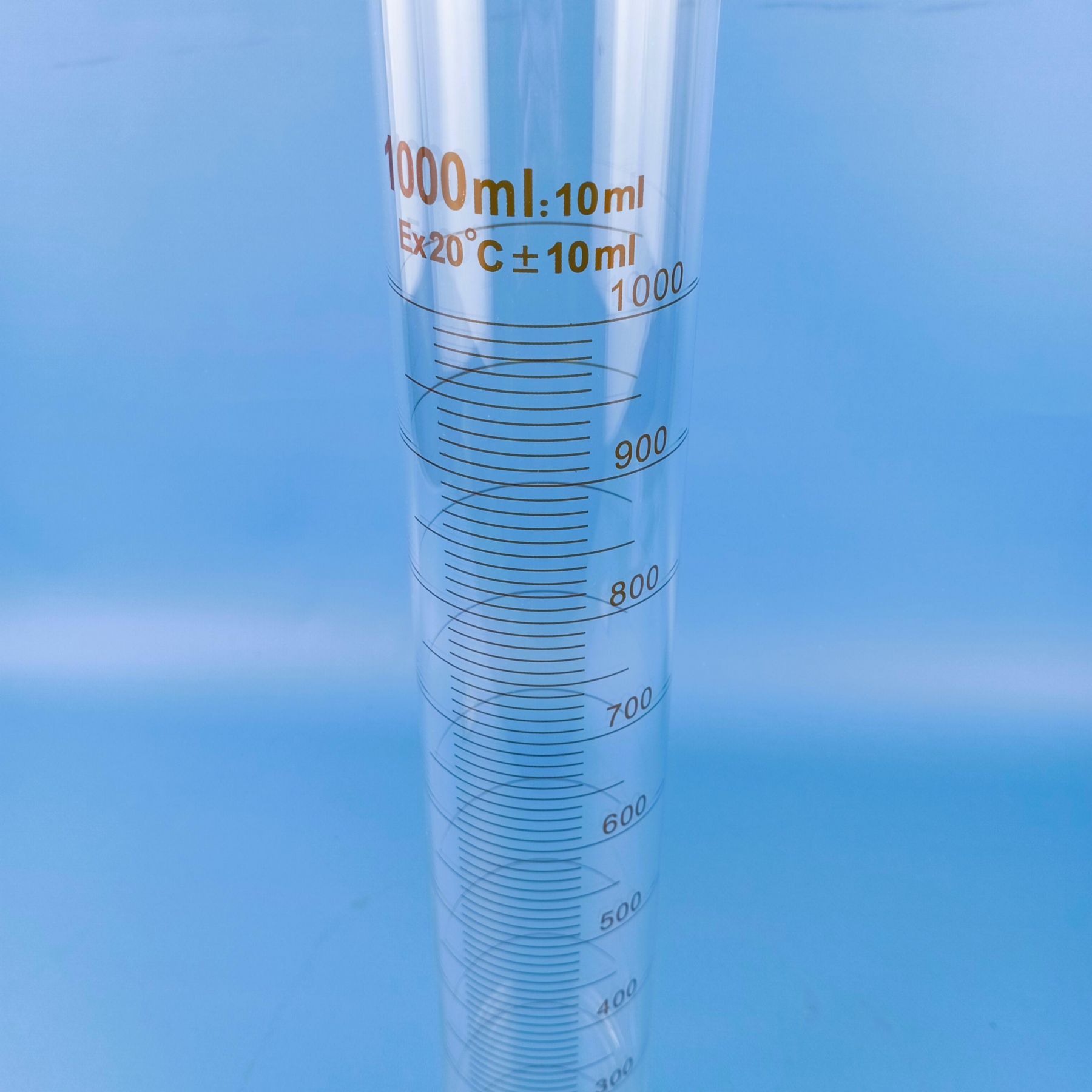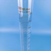 Высокоточный мерный цилиндр, выполненный из боросиликатного стекла.