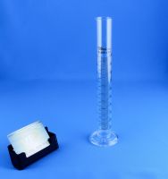 Высокоточный мерный цилиндр, выполненный из боросиликатного стекла.