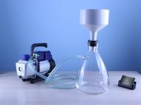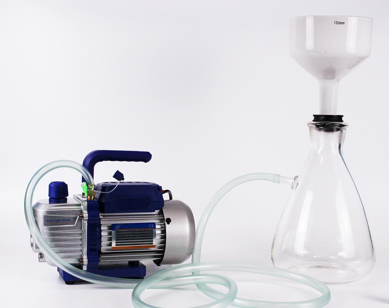 Специализированная вакуумная установка для быстрого и более тщательного фильтрования больших объёмов жидкостей. Состоит из воронки Бюхнера, колбы Бунзена, изолирующей силиконовой прокладки и главного рабочего элемента - вакуумного насоса Labdevices-115 со скоростью перекачивания 42 л/м свободного воздуха. Принцип работы установки максимально прост - воронка Бюхнера через изолирующую силиконовую прокладку герметично вставляется в колбу Бунзена, в которой насосом создаётся вакуум, в итоге заливаемая в воронку жидкость начинает активно просачиваться через слой предварительно насыпанного угля и беззольный фильтр, в итоге скорость фильтрации вырастает в десятки раз и вам не придётся тратить на процесс фильтрования и очистки браги или готового продукта часы своего времени.