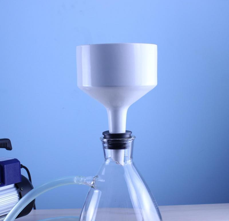 Фарфоровые воронки Бюхнера подходят для различных жидкостей в лабораторных условиях благодаря своей прочности и химической стойкости. Их можно использовать с большинством кислот, кроме плавиковой кислоты; сильные основания (например, гидроксиды натрия или калия); органические растворители (спирты, ацетоны, хлороформ); различные солевые растворы; биологические образцы. Также фарфор устойчив к высоким температурам, но рекомендуется постепенное изменение температуры во избежание теплового шока.