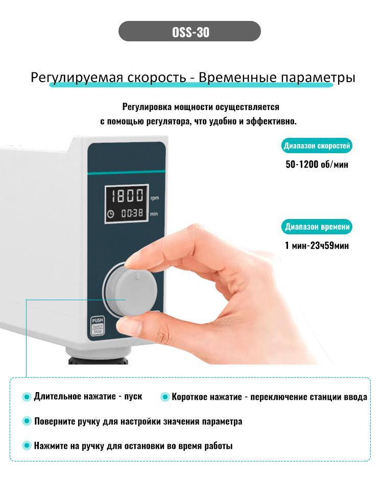 Верхнеприводная мешалка Labdevices-OSS-30, с цифровым дисплеем, до 20 литров, максимальная вязкость 16000 Мпа. это сложная верхнеприводная мешалка, специально разработанная для обеспечения точного и эффективного механического перемешивания и гомогенизации веществ с различными вязкостями, до 16000 мПас. С максимальным объемом перемешивания до 20 литров и диапазоном скоростей от 50 до 2200 об/мин, эта мешалка отлично подходит для широкого спектра применений, включая химический синтез, фармацевтику и биотехнологии. Оснащенная цифровым дисплеем для точного управления, бесщеточным двигателем постоянного тока и рядом защитных механизмов, она обеспечивает высокую надежность и безопасность в эксплуатации. Ее прочная конструкция и расширенные функциональные возможности делают ее незаменимым инструментом для лабораторий и производств, где требуется стабильное и эффективное перемешивание.