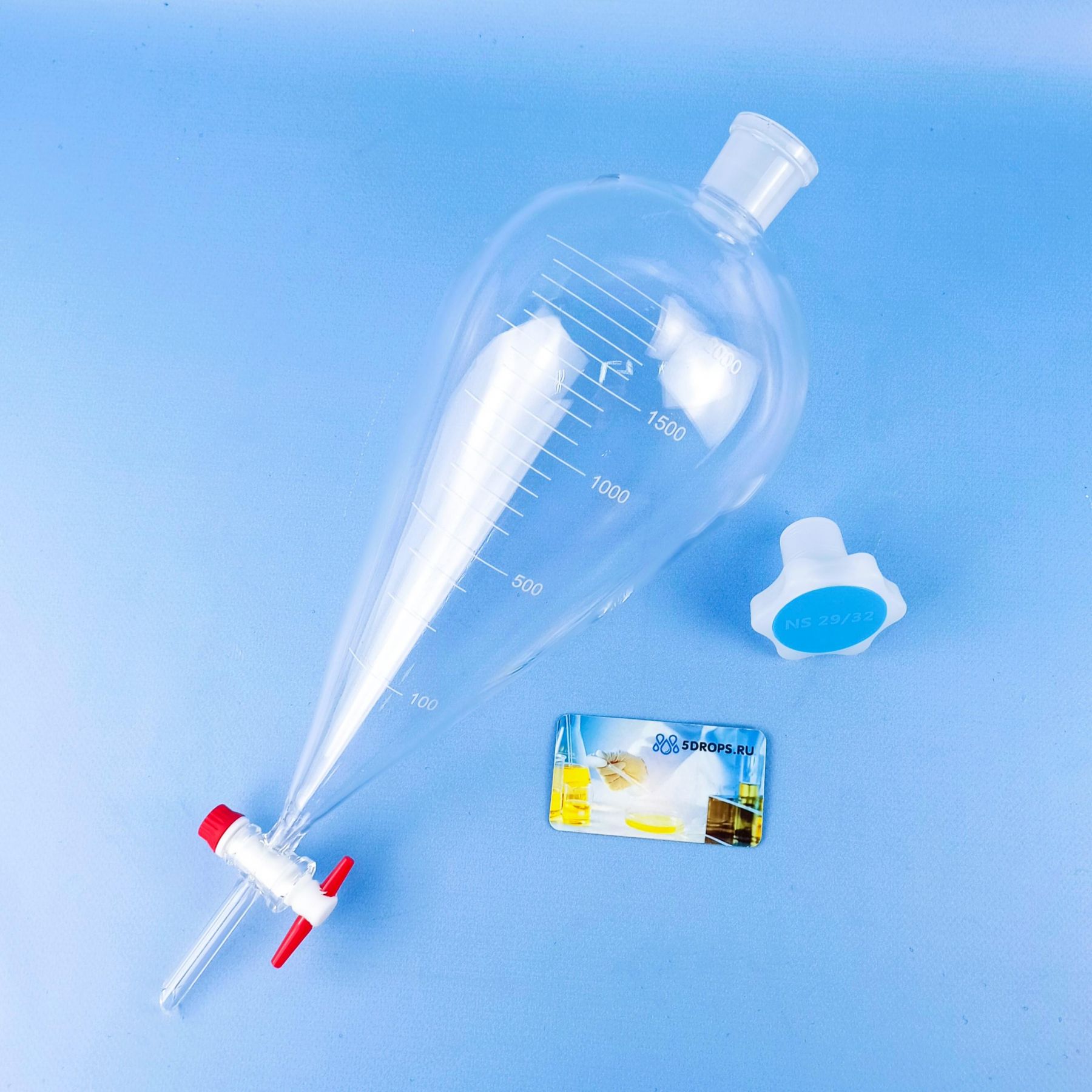Воронка делительная Labdevices ВД-3-2000, грушевидная, с фторопластовым краном, на 2000мл предназначена для разделения несмешивающихся жидкостей в процедурах экстрагирования.