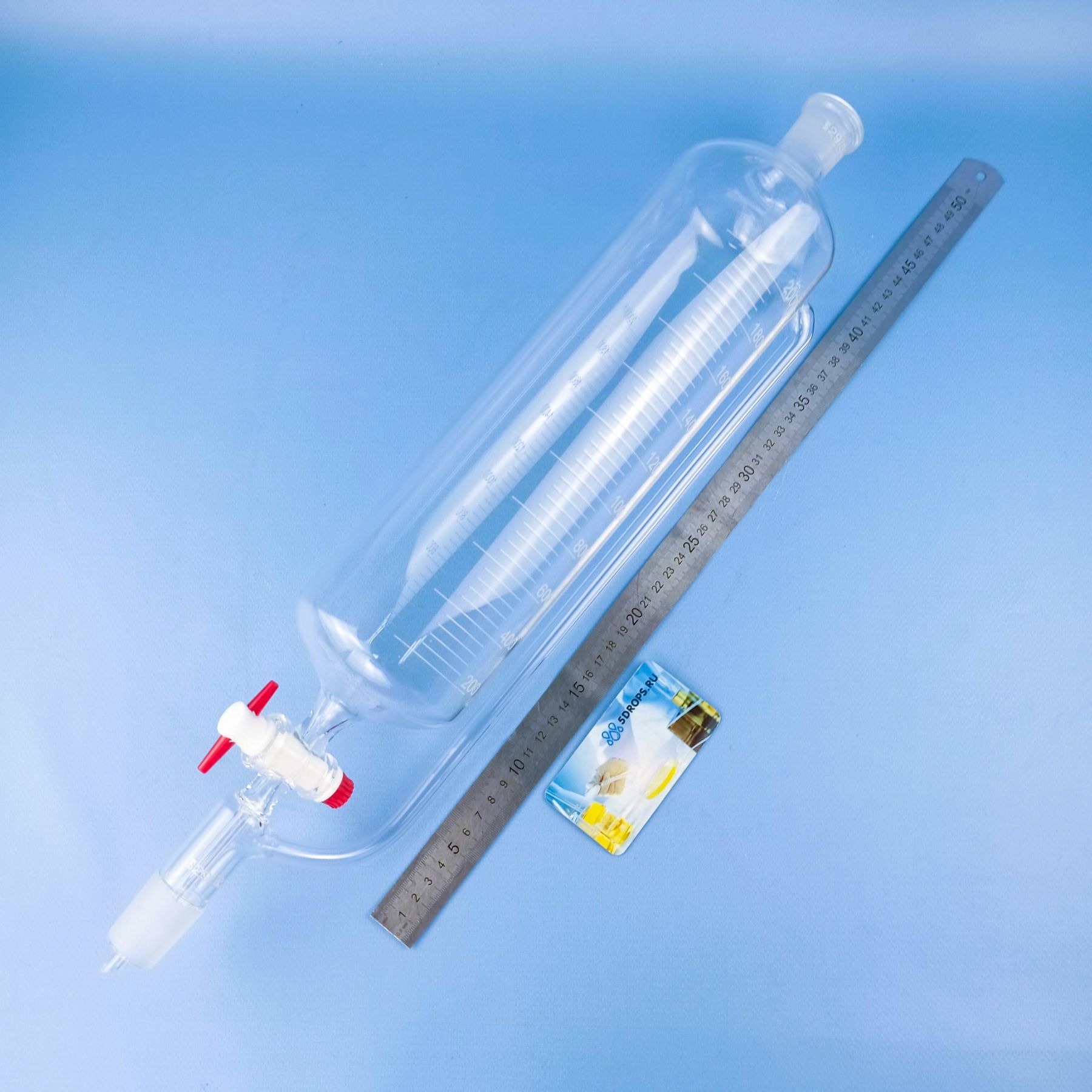 Перейти к описаниюВоронка капельная цилиндрическая Labdevices, ВД-2-2000 шлиф 29/32, с компенсатором давления, на 2000 мл. Воронка капельная применяется для разделения жидких несмешивающихся веществ разной плотности, она используются если необходимо достаточно медленно ввести жидкость на дно каких-либо сосудов. Ее часто применяют если ведётся работа с малыми дозами веществ. Изготовлена из стекла способного переносить воздействие большинства химических соединений, включая кислоты и неконцентрированные щелочи. Благодаря наличии компенсатора давления вы сможете добавлять различные жидкости в очень плотно закрытые ёмкости. Компенсатор давления представляет собой трубку, расположенную в боковой части воронки. Предназначена для для сброса избыточного газа из колбы после слива в нее нижней более тяжелой жидкости, когда следует изолировать ее от воздействия воздуха. Капельные воронки бывают грушевидной или цилиндрической формы.